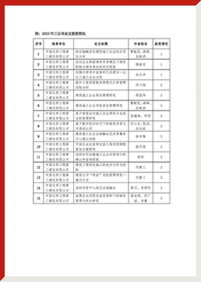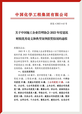 近日,中国施工企业管理协会在天津召开以“数智赋能 融合发展”为主题的2023年度工程建设行业财税大会。大会发布了建筑财税优秀论文和典型案例,公司申报的15篇论文获奖。其中,一等奖3篇,二等奖1篇,三等奖11篇,获奖总数创历史新高,突出展示了公司财税管理创新成果。 此次建筑财税管理优秀论文和典型案例征集活动,旨在推动建筑财税管理创新,加强财税管理创新成果的推广和应用,进一步提升建筑企业财税管理水平。公司15篇获奖论文的选题充分结合企业财税工作实际和当前管理热点,突出世界一流财务管理体系建设、司库体系建设、海外项目财税管理、融资管理、财务信息化建设、财会监督等方面内容,对于进一步推动公司财务管理创新,促进公司高质量发展具有很强的现实意义。