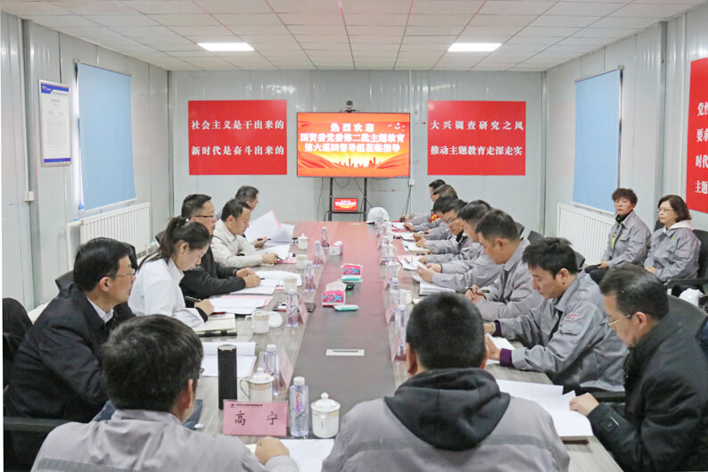 为推动学习贯彻习近平新时代中国特色社会主义思想主题教育走深走实,11月15日,国资委党委第二批主题教育第六巡回督导组成员王超、杜号、贠婷婷一行深入内蒙古公司党总支开展调研督导。集团公司工会主席,党群工作部、党委宣传部、企业文化部部长李胜利,公司党委副书记、工会主席顾士新陪同调研。