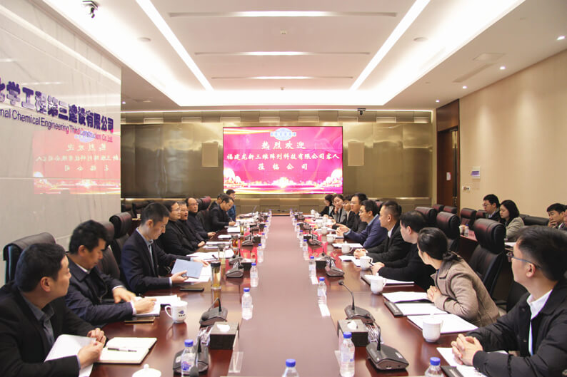 郭彦炳副院长、王思博总经理介绍了华中师大、福建龙新发展概况、技术优势、产学研用等情况。希望与中化三建交融互促、携手并进,推动科技创新运用和产业互补,促进各方高质量可持续共同发展。