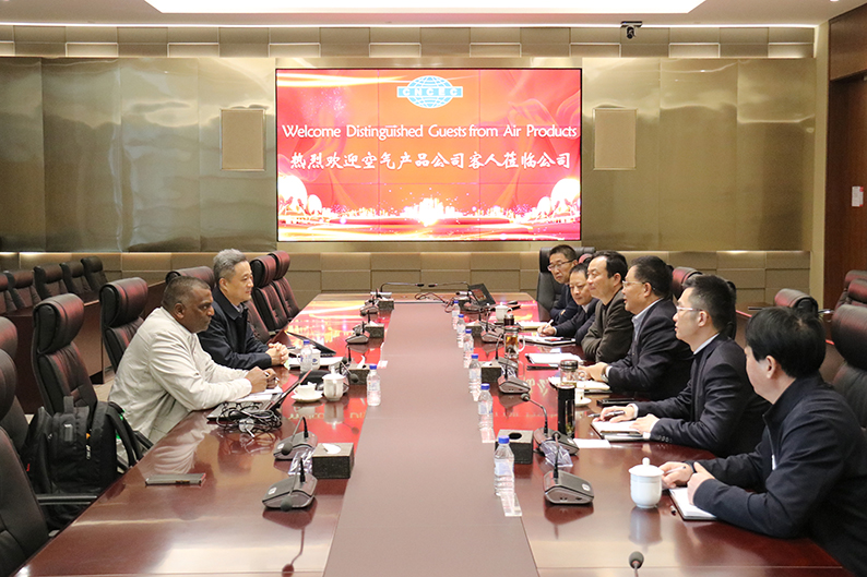 11月30日,公司副总经理张家龙、赵亚明在合肥总部会见美国空气产品公司(Air Products,简称AP)高级项目总监Mr. Nareshan Moodley一行,双方就强化沙特尼奥姆HIDC绿氢中试项目执行、深入国际工程合作进行了深入沟通交流。