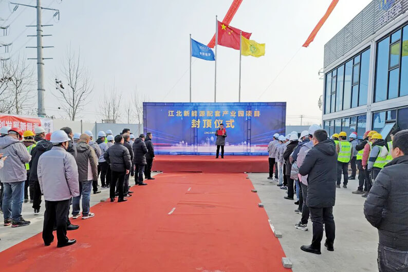 董义斌副总经理在江北新能源配套产业园项目封顶仪式上致辞,向即将挂牌成立的中化学三化建绿发(安徽)建设有限公司表示热烈祝贺。皖江江北新兴产业集中区管委会副主任刘美胜向中化三建蓬勃发展和项目安全优质高效建设予以充分肯定并寄予美好祝愿。
