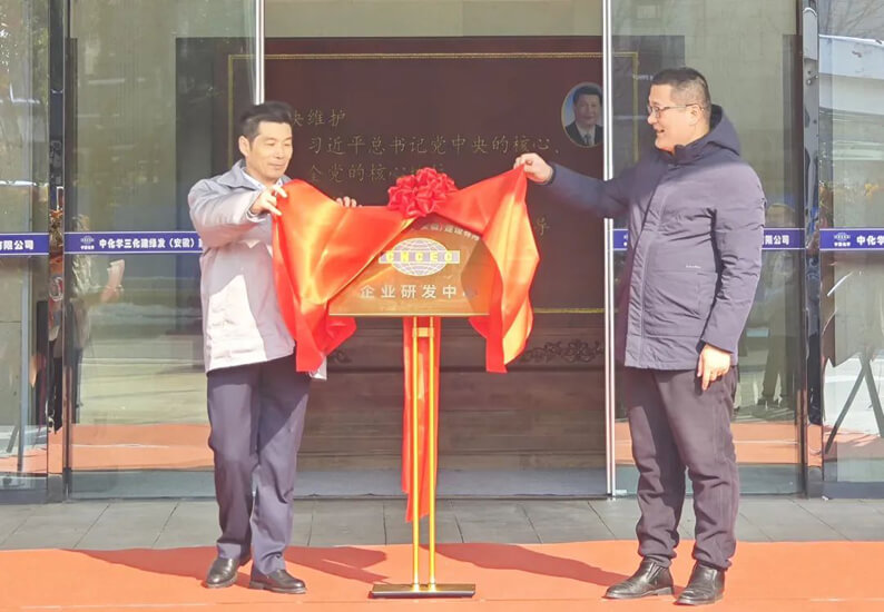 参加项目封顶仪式的全体人员随即出席了中化学三化建绿发(安徽)建设有限公司研发中心揭牌仪式。研发中心将依托公司和中化学三化建绿发(安徽)建设有限公司平台,与有关高校和企业展开合作,积极引进科研技术人员,开展新材料、新技术、新工艺等研究应用,为加快有限公司改革发展提供有力支撑。