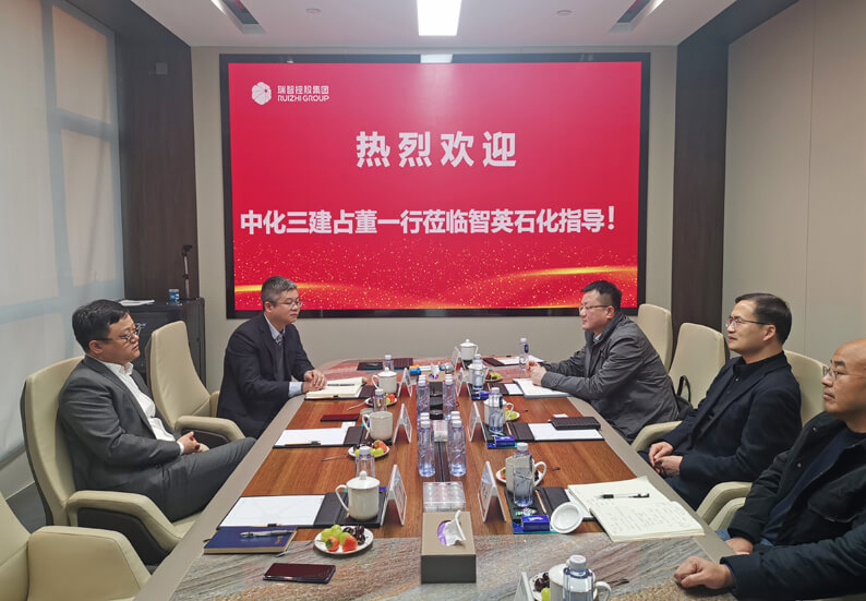薛宽亮董事长对占德庆董事长一行的来访表示欢迎,充分肯定了裕龙石化项目建设成效,感谢中化三建对项目建设的大力支持,介绍了瑞智集团产业布局及业务开展情况。表示中化三建是行业的排头兵,品牌响亮、声名远播,希望双方加强对接,在石化、医药、精细化工领域谋求更深层次合作,在践行长三角一体化等国家战略中形成更大合力,为国家经济社会发展添砖加瓦。
