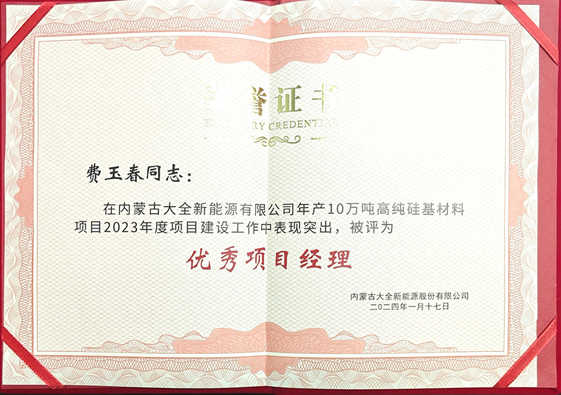 月度总结会上,业主通报了大全项目2023年度主要承包商综合考评情况,公司在项目建设过程中综合表现突出,被评为2023年度“优秀施工单位”,项目经理费玉春荣获“优秀项目经理”称号。