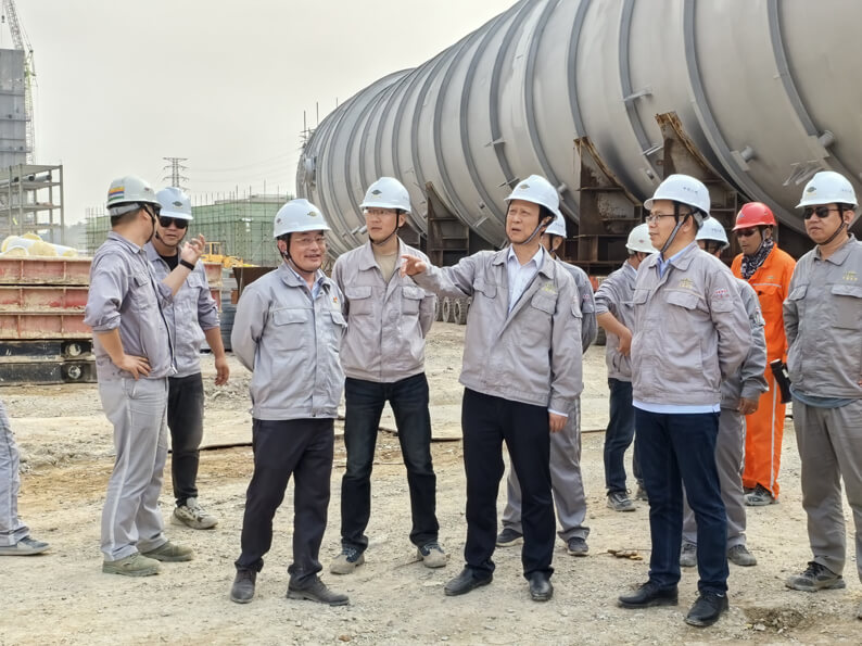 在桂期间,梁华金总经理深入上海分公司承建的广西恒逸新材料有限公司120万吨/年己内酰胺-聚酰胺产业一体化及配套项目动力装置、已酮装置调研。
