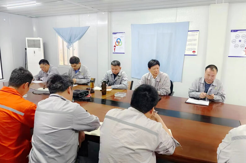 梁华金总经理仔细查看项目安全、质量、进度及成本管控情况,听取分公司负责人工作汇报,对分公司实体化建设和项目管理取得的成效予以肯定,就加强现场施工组织、安全、质量和精细化管理,加快推动项目建设提出要求。一要善于总结经验,主动出击,应对不利因素,积极创造条件,灵活处置难题,合理调配资源,有序完成项目各节点任务。二要强化党建引领,聚焦“两个提升”,做好项目全过程策划,抓实抓细各项工作,持续提升项目效率效益。三要深化安全、质量和文明施工管理,树牢安全生产“三线”意识,发挥考核激励作用,升级施工工艺,提高工程质量,确保项目安全优质高效运行。四要强化品牌意识,努力干好在手项目,积极打造精品工程、优质工程,树立中化三建良好品牌形象,巩固深化与业主的友好合作关系,实现滚动经营和可持续发展。