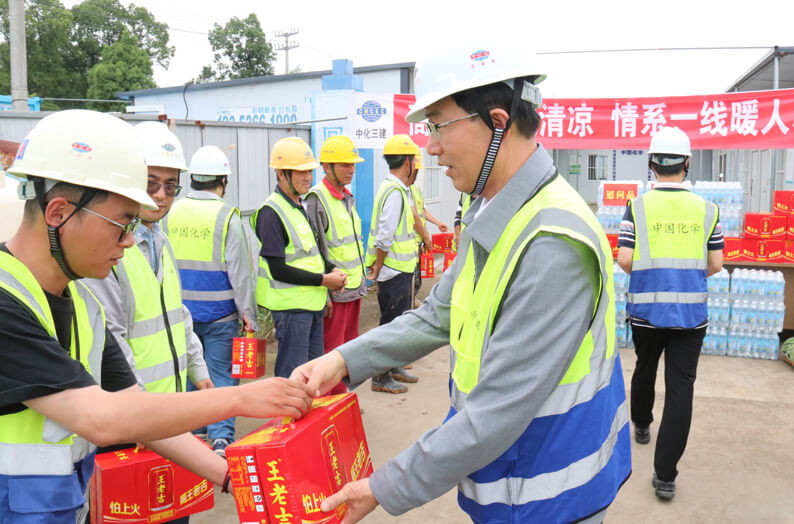在宜期间,顾士新副书记深入安庆怀宁英科400亿只/年高端医用手套项目,实地了解项目安全、质量、进度、成本管控情况,并开展夏日“送清凉”活动,亲切看望慰问高温湿热天气下坚守岗位的一线干部员工,为他们送上防暑降温物资,叮嘱大家要注意做好个人防护,确保身体健康,注意高温作业安全。要求分公司坚持“以人为本”,切实增强做好汛期、高温天气状况下安全管理工作的责任感和紧迫感,认真研究、周密部署,积极做好各类风险防范应对工作,全力保障广大员工健康安全,安全有序高效推进项目建设。