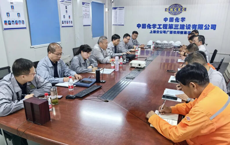 在钦州期间,潘新宇总工程师带领精细化管理检查组深入广西恒逸己内酰胺-聚酰胺产业一体化及配套项目,仔细查看了环已酮、动力装置现场安全、质量、进度、成本控制等方面情况,听取项目负责人工作汇报,对项目建设取得的成效予以肯定,就深化精细化管理,安全优质高效推进项目建设提出要求。一要树立“安全第一、质量至上”理念,严格落实全员安全生产责任制,解放思想、担当作为,创新工作方法,提高管理质效,在切实保障安全、质量受控的前提下,高效推进项目建设,确保项目按期交付。二要深化推动经营承包责任制落实,严格执行实名制管理要求,强化项目分包管理,凝聚项目部与分包单位合力,统筹推进项目建设。三要加强现场施工组织,深化精细化管理,加强成本管控,努力降本增效,提升价值创造能力。四要增强服务意识,确保干好在手项目,争创国家优质工程,打造中化三建品牌,巩固与恒逸业主的合作关系,为承揽后续项目、拓展广西周边市场、实现滚动经营和可持续发展奠定坚实基础。