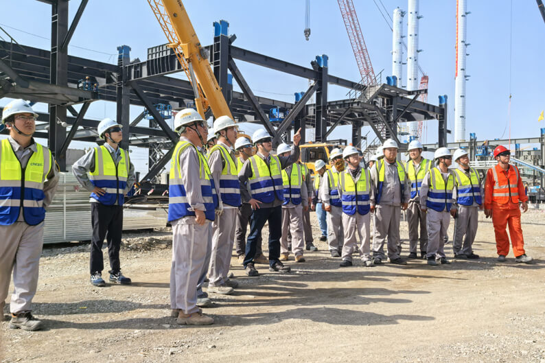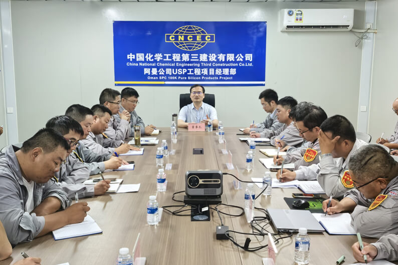 占德庆董事长查看了阿曼公司办公驻地和10万吨/年高纯硅基材料项目现场安全、质量、进度、成本控制等方面情况,听取分公司和项目负责人工作汇报,对阿曼公司“三化”建设及项目组织策划、生产运营、降本增效、安全固本等方面取得的成效予以肯定,要求深化项目一体化、扁平化、集约化管理,加强现场管理和资源统筹协调,持续提升管理效能和施工效率,快速、持续掀起项目建设热潮。要狠抓现场安全管理,时刻牢记安全生产“六个方面、十个是否”要求,持续完善安全责任体系,提高安全培训效能,加大安全监督力度,规避安全红线,筑牢安全防线,坚守安全底线,切实保障现场安全受控和员工生命健康安全。要认真学习贯彻公司2024年第二次生产经营会精神,积极践行集团公司“135”发展战略,建立健全阿曼市场开发机制,持续推进海外“三化”建设,狠抓项目建设全周期管理,努力实现出品牌、出效益、出人才、出经验目标,在干好在手项目的基础上,全力以赴开拓市场,为五年再造一个更高质量中国化学贡献力量。