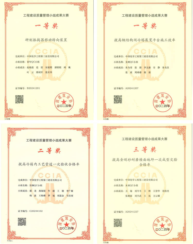 近日,在中国建筑业协会主办的2024年工程建设行业质量管理小组活动成果大赛中,米兰平台建筑工程三公司“青年QC小组”发布的《研制振捣器移动转向装置》QC成果、第二建安工程公司“克难QC小组”发布的《提高钢结构间冷塔展宽平台施工效率》QC成果,在全国2555个QC成果中脱颖而出,同时荣获2024年全国“工程建设质量管理小组成果大赛”一等奖,这是公司2020年以来连续第五年获此殊荣。另外,山东分公司“狂飙QC小组”发布的《提高冷箱内工艺管道一次验收合格率》QC成果、第三建安工程公司“未来QC小组”发布的《提高金刚砂地坪平整度一次交验合格率》QC成果分别荣获此次竞赛的二、三等奖。