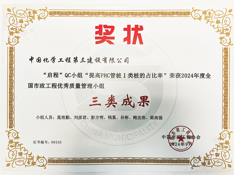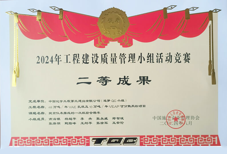 此外,江苏分公司“追梦QC小组”针对东方雨虹扬州虹石4.8万吨/年VAE乳液及10万吨/年VAEP可分散胶粉项目仪表接线一次校验合格率低等问题,开展《提高仪表接线一次交验合格率》QC课题研究,顺利将仪表接线一次校验合格率提高到99.72%,节约费用约2.09万元,在中国施工企业管理协会近日举办的2024年工程建设质量管理小组活动竞赛中荣获二等成果;巴斯夫(广东)一体化项目部“启程QC小组”针对PHC管桩基础首次采用抱箍式机械连接,造成Ⅰ类桩的占比率相对较低的问题,开展《提高PHC管桩Ⅰ类桩的占比率》QC课题研究,顺利将PHC管桩Ⅰ类桩占比率提高到93.33%,在中国市政工程协会近日举办的2024年全国市政工程优秀质量管理小组活动中荣获三类成果。
