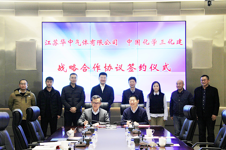 在梁华金总经理、王帅总经理的见证下,公司与江苏华中气体有限公司签署了战略合作协议,就多领域、全方位、深层次合作达成重要共识。