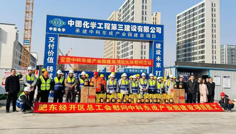 近日,合肥市肥东县经开区总工会主席王元才一行深入米兰平台基础设施分公司承建的中科东成产业园建设项目开展新年慰问活动,为坚守一线的建设者们送去新春的温暖与祝福。