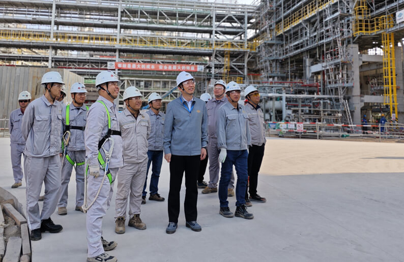 赵亚明副总经理带领项目部和参战专业公司管理人员深入罐区、维修车间、管廊及各装置区进行现场安全巡检,与一线广大参战员工亲切握手、亲切交流,详细了解质量进度、安全环保等方面情况,认真听取大家的意见和建议。叮嘱大家,在确保安全、环保和质量的前提下,科学安排、高效推进施工计划,及时解决施工中遇到的问题,确保项目建设顺利推进。