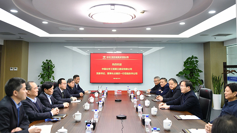 李立新董事长介绍了东华公司生产经营、改革发展成果和战略规划等情况。他表示,双方作为同属中国化学的驻皖央企,历史渊源深厚,合作领域广阔,希望双方持续拓展合作领域和空间,发挥各自优势,打造合作共赢典范,为实现中国化学“135”发展战略贡献力量。