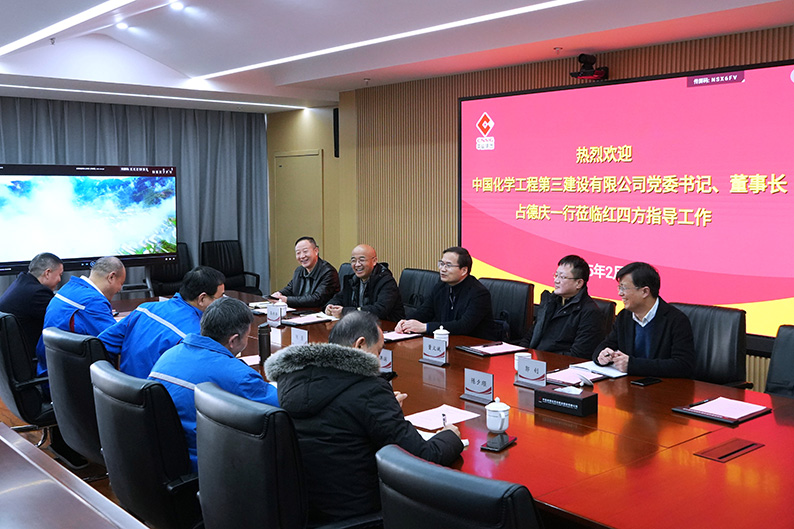 占德庆董事长对中盐安徽红四方肥业成功上市表示祝贺,感谢长期以来给予中国化学三化建的信任与支持,简要介绍了公司生产经营、改革发展等情况,表示中盐安徽红四方肥业是公司长期重点服务的大客户、好伙伴,双方具有良好的合作基础和深厚的友谊,公司将充分发挥管理、技术和属地等优势,更好地服务中盐安徽红四方肥业的高质量发展。