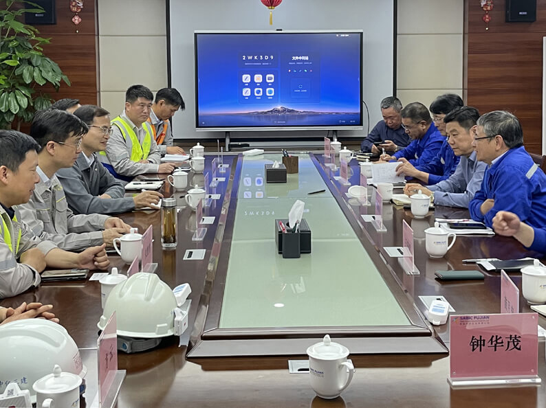 会谈中,双方就项目安全管控、质量管理标准升级、工程进度协同优化等深入交换意见,就加快推进项目建设达成共识。占德庆董事长对福建中沙给予的信任与支持表示感谢。他表示,公司高度重视中沙古雷石化项目建设,始终坚持高标准、严要求建造精品工程,当前项目正处于攻坚关键阶段,公司将发挥好管理、技术、服务等综合优势,强化项目组织,精准匹配资源,主动创造条件,打好攻坚之战,交付优质工程、满意工程。陈艳民总裁对三化建管理、技术、施工能力以及优质服务予以充分肯定,希望三化建践行铁军传统,锻造示范引领新标杆,力争将中沙古雷石化项目打造成为行业样板工程。IPMT项目总监傅峻松期望三化建进一步彰显行业先锋作用,筑牢安全根基,锻造品质标杆,高效赋能项目建设新跨越。