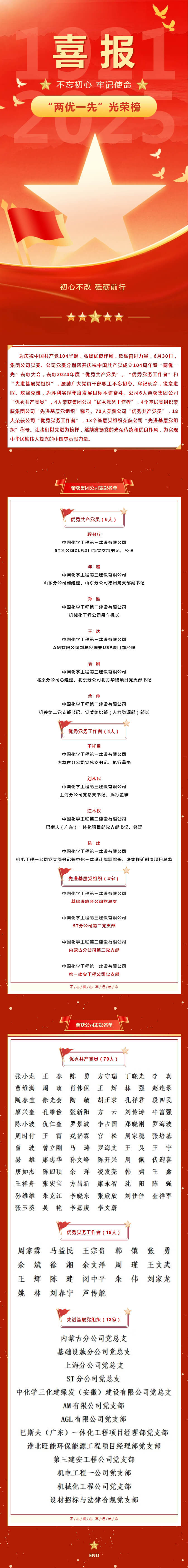 同心向党丨这些先进集体和个人荣登集团公司和公司“两优一先”光荣榜