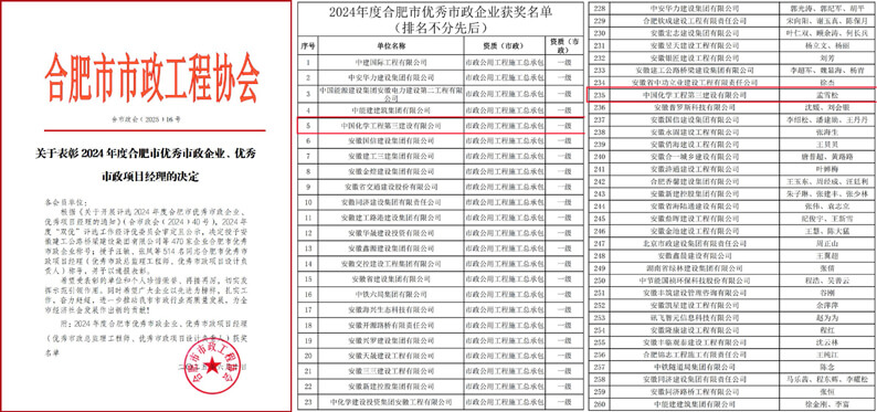 近日,合肥市市政工程协会组织开展了2024年度合肥市优秀市政企业、优秀市政项目经理评选活动。经过严格评审程序,包括协会初审、市城乡建设局及市城乡建设领域协会党总支核查、会长联席会研究审定等环节,米兰平台凭借卓越的综合实力和突出的工程业绩,再次获评"合肥市市政工程行业优秀企业"称号。与此同时,公司基础设施分公司安庆高新区PPP项目经理孟雪松同志荣获"优秀项目经理"荣誉称号。 公司积极响应长三角一体化发展战略,持续优化业务布局,强化项目管理效能,坚持技术创新与科学管理并重,大力推进"四新技术"应用,以优质工程赢得社会各界广泛认可。在合肥市场,公司承建了多项具有代表性的重点工程项目,其中包括:荣获"安徽市政工程优质奖"的四里河水体达标整治项目;合肥市重点民生工程——城市轨道交通6号线和7号线一期风、水、电安装及装修总承包项目;占地5.9万平方米的经开区重点民生工程合肥繁华学校项目;为经开区打造千亿产业园提供重要支撑的新桥核心部件产业园及基础设施配套项目。合肥市场作为公司战略布局的重要支点,不仅助力公司立足安徽、辐射全国,更成为公司积极践行"一带一路"倡议、建设国际一流工程企业的重要战略平台。