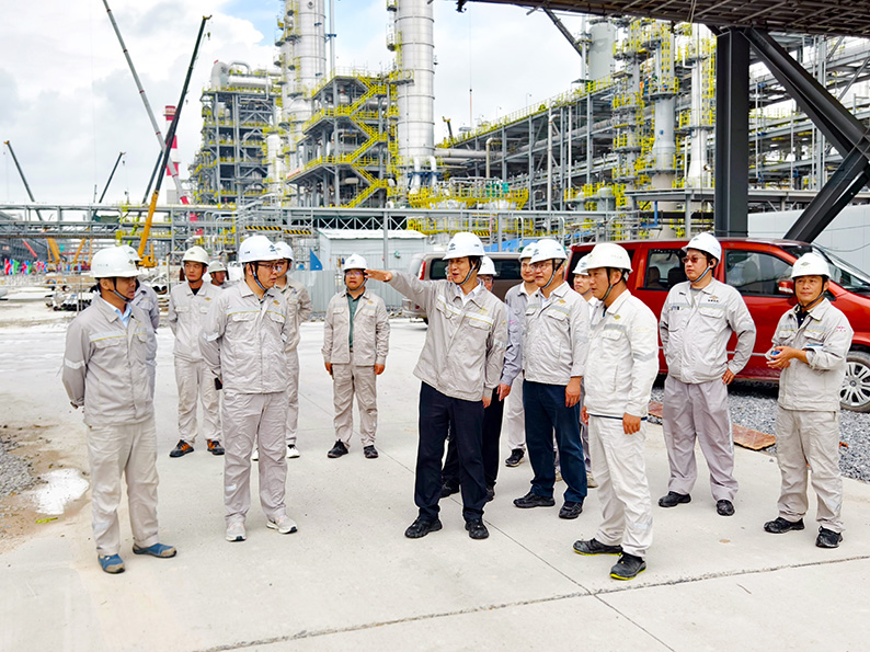 梁华金总经理带领检查组分别深入广西华谊新材料有限公司2万吨/年阻聚剂项目,广西华谊能源化工有限公司甲醇制烯烃及下游深加工一体化项目循环水场及系统工程,广西恒逸新材料有限公司120万吨/年己内酰胺—聚酰胺产业一体化及配套项目动力装置土建及钢结构工程、环己酮装置等5个项目现场进行了全面细致的检查,详细询问施工组织、技术难点及安全措施落实情况,对现场管理亮点予以肯定,对潜在风险点提出改进要求,听取了各项目负责人工作汇报,就推进星级标准化工地建设、强化安全质量管理、加强一体化管控、确保现场进度等提出要求。一要筑牢安全底线,将安全生产责任制穿透至每个班组、岗位,强化隐患排查治理与应急预案演练,确保“零事故”目标不动摇;二要严控质量生命线,严格执行工艺纪律与质量标准,特别是焊接、防腐等隐蔽工程,确保全过程质量可追溯,打造经得起检验的精品工程;三要强化进度管理和统筹,运用精益管理方法优化施工组织,精确资源配置,确保关键节点按期达成,展现公司卓越履约能力;四要深挖降本增效潜力,深化精细化管理,在材料精准发放、设备高效利用及减少返工浪费上持续发力,提升项目盈利水平;五要主动学习行业先进经验,持续优化管理流程,加强内部协作与对外沟通,凝聚各方力量,保障项目顺利推进。