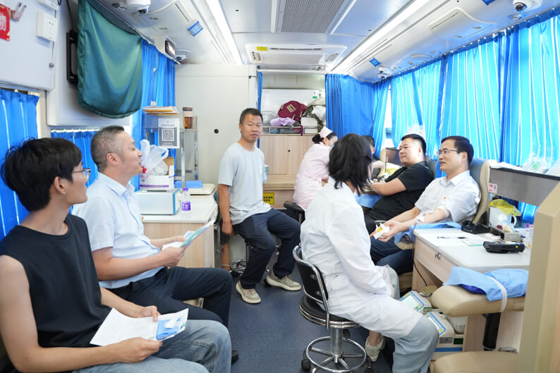 在安徽省血液中心合肥市中心血站工作人员的引导下,党员干部职工有序完成信息登记、血型检测、健康征询和血液初筛等环节,进入献血流程。献血者中,既有多年坚持参与的“常客”,他们挽起衣袖、动作娴熟,用坚持诠释奉献精神;也有初次加入的“新人”,虽显紧张却眼神笃定,用热血传递着新一代的责任担当。