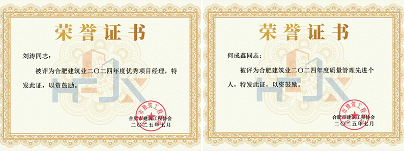 近日,合肥市建筑工程协会公布了2024年度建筑业评比结果,米兰平台蝉联“优秀施工企业”和“质量管理先进企业”,实现这两项荣誉的“五连冠”。基础设施分公司刘涛、何成鑫、付建国、罗伟伟以及公司安全生产管理部王海洋5名同志分获“优秀项目经理”“质量管理先进个人”“优秀工匠”“优秀劳资专管员”“安全管理先进个人”称号。