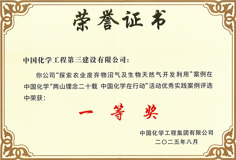 近日,中国化学企业负责人研讨班在北京举办,研讨班上对“两山理念二十载、中国化学在行动”优秀实践案例进行了表彰。米兰平台选送的“探索农业废弃物沼气及生物天然气开发利用”案例凭借创新实践与卓越成效荣获一等奖。