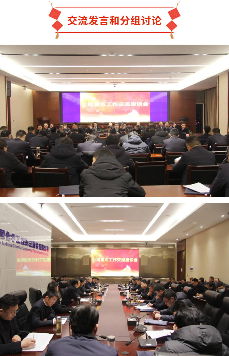会议期间,公司还组织召开了重点工作交流会,副总经理李传江、总工程师潘新宇分别作了题为《聚焦价值创造能力 强化项目运营管理》和《勇于担当,狠抓落实 助力公司高质量发展》的专题报告,与会人员聚焦“两个提升”、增强价值创造能力,围绕项目管理、降本增效、资金回收等议题进行了交流发言和分组讨论。按照议程安排,26日还将组织开展领导干部警示教育,各类责任书签订仪式和先进表彰活动,2023年度总工程师考核、年度机关部门绩效考核、下半年机关部室长及所属单位一把手定性考核和总部机关部室2023年度组织绩效考核,所属单位负责人应知应会考试,并对大会进行总结。