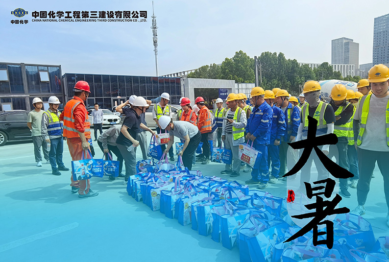 连日来,合肥市持续高温,生物医药产业园项目建设现场依旧机械轰鸣、热火朝天。为确保一线员工健康安全、工程质量稳定可控,经开区管委会与公司共同组织此次“送清凉”活动,将防暑降温物品送到一线员工手中。姚峰副主任与现场管理和施工人员亲切交谈,详细了解工程进展、劳动保护和防暑降温措施落实情况。他强调,生物医药产业园项目是合肥市重点战略性新兴产业项目,广大建设者战高温、斗酷暑,展现了三化建央企担当和新时代产业工人精神风貌。项目部要始终坚持“人民至上、生命至上”,严格落实安全生产主体责任,科学调整作息时间,加大防暑降温投入,强化安全教育培训,确保高温季节安全生产、质量管理、进度控制“三到位”。