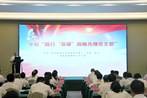 会上,公司阜阳项目经理部党支部以《争创“践行‘双碳’战略先锋党支部》为题,介绍了以党建引领、科技赋能,在践行“双碳”战略中探索党建融合“源动力”,积极培育“践行‘双碳’战略先锋党支部”“一支部一特色”党建品牌的经验、做法及成效,受到省直机关工委领导、省直机关工委党建工作第十联系片16家驻皖央企与会代表的一致好评。
