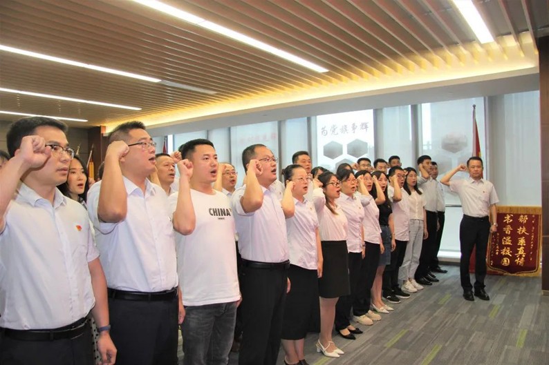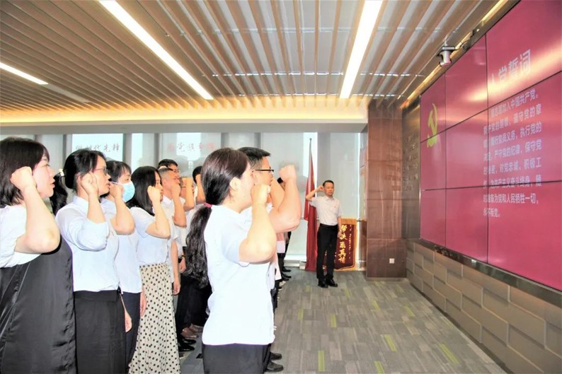 主题党日活动中,新老党员面向鲜红的党旗庄严宣誓,在铮铮誓言中感悟和坚守初心。大家还集中观看了央视“七一”特别节目——《党旗在一线飘扬 筑牢底盘 让城市更美好》专题片,在庄严而又温馨的氛围中度过了一个特殊而难忘的“政治生日”。