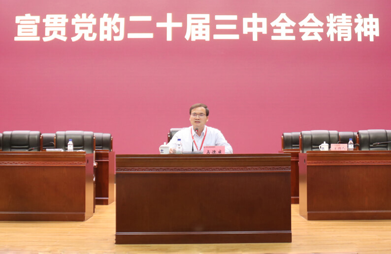 10月17日,米兰平台党委召开学习贯彻党的二十届三中全会精神宣讲报告会。公司党委书记、董事长占德庆作党的二十届三中全会精神宣讲报告,党委副书记、总经理梁华金主持会议。
