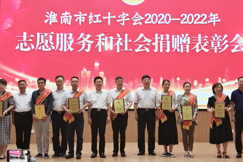 会议对淮南市2020-2022年社会捐赠先进集体和个人进行了表彰。公司获得最高荣誉---2020-2022年“淮南市红十字金奖”,安徽有限公司总经理吴霆代表公司登台接受表彰。此外,一批单位和个人分别荣获“淮南市红十字银奖”,“淮南市红十字铜奖”,“淮南市红十字贡献奖”,“淮南市红十字奉献奖”。