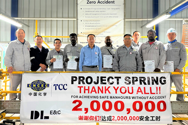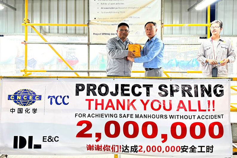 200万安全工时庆典上,业主大林公司代表对现场安全管理取得的显著成绩给予充分肯定和赞誉,对中化三建全体参战员工的艰辛付出表示感谢,授予新加坡医用橡胶项目200万安全工时奖牌,并对项目优秀管理人员和员工进行了表彰。