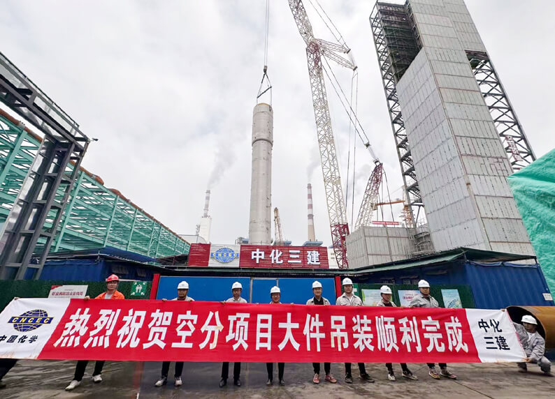 近日,公司承建的山东华鲁恒升化工股份有限公司园区产业平台优化升级项目100000Nm3/h空分装置大件设备中压塔顺利吊装就位,标志着该项目进入全面安装阶段。