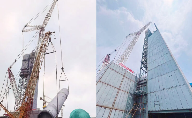 山东分公司承建了该项目 100000Nm3/h空分装置安装工程及机柜室配电室等配套工程。本次吊装的中压塔直径4.65米,高34.44米,总重133.5吨,吊装高度75.8米,采用750吨履带吊主吊,200吨履带吊溜尾。为保证吊装工作顺利进行,分公司、项目部克服工期紧、任务重、作业环境复杂等困难, 精心部署,科学管控,高效组织施工,精细成本管理,确保安全交底全覆盖 。项目经理、总工程师在现场全程指挥,确保吊装万无一失。项目队长、吊装班组作业人员严格执行各项安全管理规定,实地勘察、验算、模拟吊装、反复论证,抓好安全及技术关键工序过程控制。全体参战员工主动作为、加班延点,高标准、严要求、快节奏强力推进项目建设,经过艰苦鏖战,安全稳妥胜利实现中压塔吊装就位,为稳步推进后续项目建设奠定了坚实基础,充分彰显了公司优质的施工组织和技术攻坚实力, 树立了良好的企业品牌形象, 赢得业主及各方高度赞誉。
