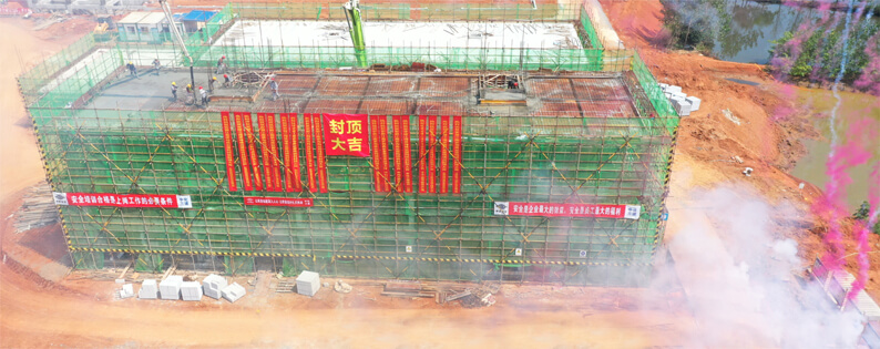 该项目为公司施工总承包。防腐节能/铖铧建安公司承建了项目所有土建、设备安装、管线安装、装饰装修、采暖卫生与电气、仪表、通风与空调、消防及室外线路、管道、道路、围墙等工程。综合管理用房为本项目的标志性建筑物。自今年5月项目开工以来,恰逢梅雨和高温季节,对土建施工影响较大,项目部克服工期紧、任务重、施工组织管理难度大等难题,秉持“强监管,优服务,提效能”原则,精心部署,科学管控,高效组织施工,精细成本管理,确保安全交底全覆盖,全力推进项目建设。项目队合理组织劳动力,调整作息时间,尽量避开高温时段,配备了足量的防暑降温物品,确保施工进度、安全两不误。全体参战员工充分发扬锐意进取、敢打必胜的铁军作风,抢抓项目建设黄金期,主动作为,加压奋进,在安全和质量全面受控的情况下,胜利实现综合管理用房封顶这一重要里程碑节点,为项目快速推进和完美履约打下坚实基础,充分彰显了公司优质的施工组织和技术攻坚实力,树立了良好的企业品牌形象,赢得业主及各方高度赞誉。