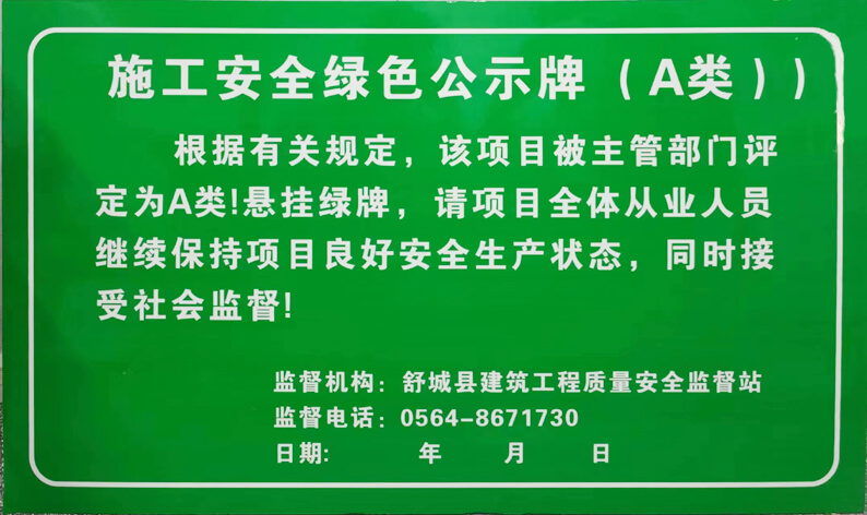近日,公司承建的安徽辉隆慧成科技有限公司年产1亿条编织袋及200万条吨袋项目胜利竣工,并荣获施工安全绿色公示牌(A类)。