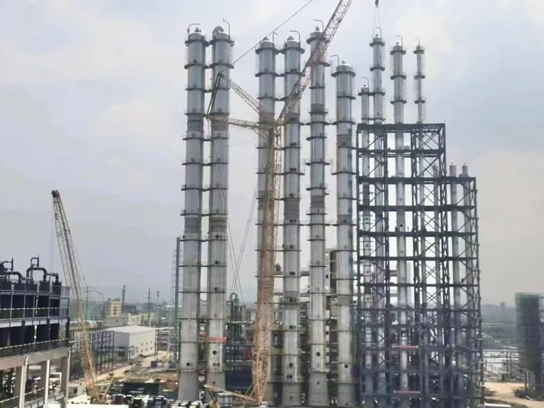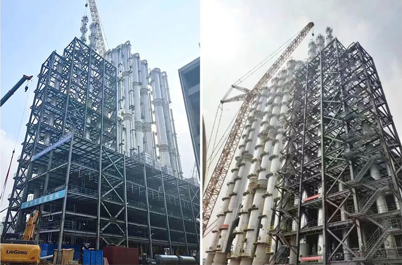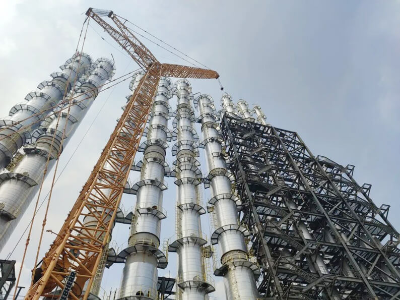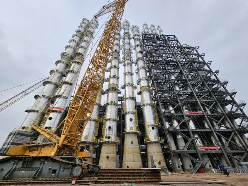 近日,由公司承建的浙江中天东方氟硅材料股份有限公司30万吨/年有机硅单体扩能项目精馏装置13台塔器成功吊装就位,为项目加速推进和完美履约奠定坚实基础。