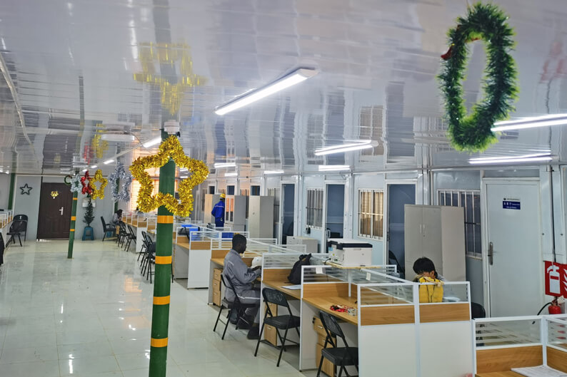 有限公司为277名安哥拉籍以及8名印度、巴基斯坦籍员工准备了蛋糕和特色美食,精心布置了办公区域,营造了较为浓厚的圣诞氛围。现场播放着欢快的“We Wish You A Merry Christmas”圣诞歌曲,外籍员工代表即兴表演了民族歌舞。项目负责人为外籍员工送上了节日祝福,向辛勤工作的外籍员工表示感谢,同时介绍了有限公司2023年取得的工作成绩,展望了2024年的发展规划,鼓励全体外籍员工在新的一年里努力工作、展现自我,以勤劳的双手创造财富,改善家庭经济状况,享受更加美好的生活。