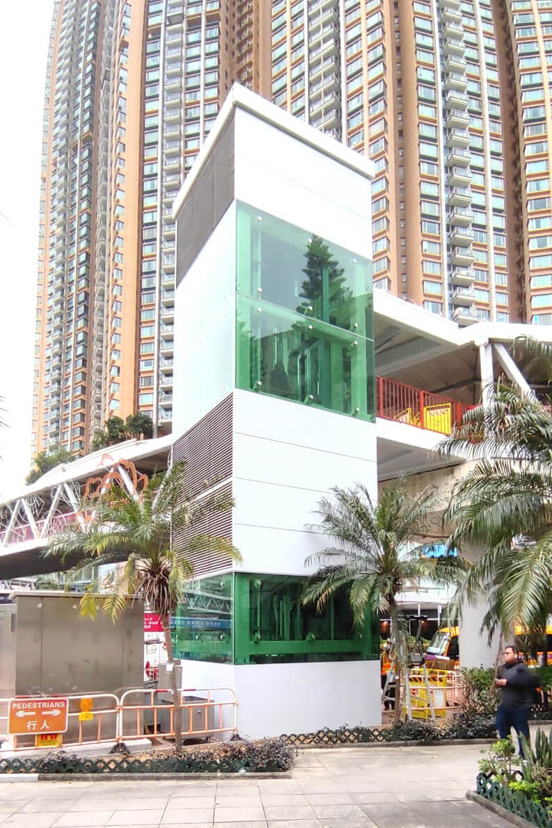 近日,公司承建的香港荃湾及屯门区内十四条行人通道及配套设施改扩建项目首部升降机竣工并顺利通过验收,正式投入使用。