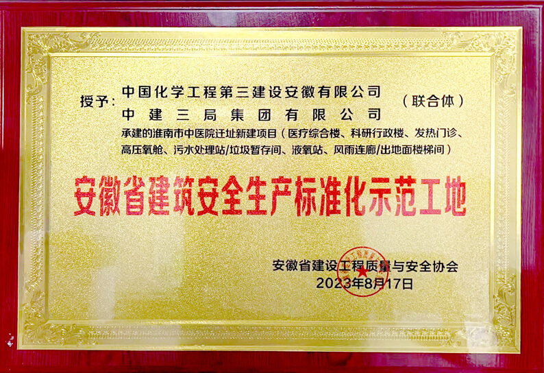 自2022年5月开工以来,安徽有限公司精心组织、高效统筹、精细管理,高标准、高质量、高效率推进项目建设。以打造精品工程为目标,成立以项目质量管理小组,严把材料关和施工过程控制,严格按照设计文件和标准规范施工。狠抓安全文明施工管理,建立项目安全生产领导小组,落实各级人员安全管理责任,提高制度执行力,重点做好对新进场人员的三级安全教育,常态化开展现场安全和文明施工检查,发现安全隐患立即整改,及时清理建筑垃圾。在全体人员的共同努力下,项目安全、质量、精细化管理等方面工作取得丰硕成果,获得地方政府及相关方的一致好评,分别荣获安徽省和淮南市“安全文明标准化示范工地”称号。