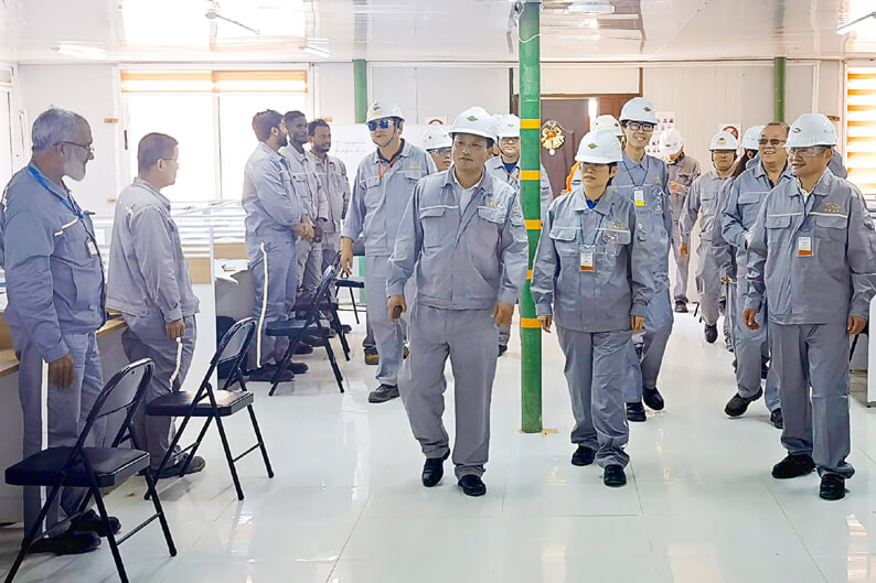 期间,陈凤代办一行实地考察了项目办公区、施工现场、员工营地,并围绕项目建设与一线干部员工进行了深入沟通交流。
