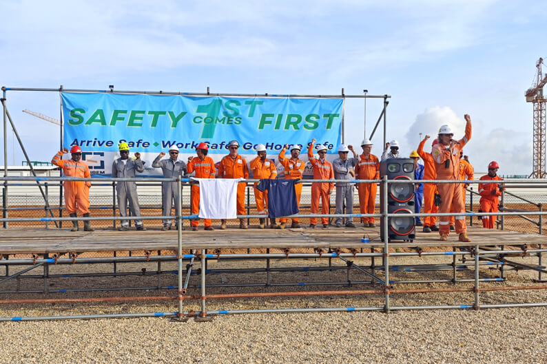 庆典活动中,业主AZULE公司、总包SAIPEM公司代表对项目优秀管理人员和员工进行了表彰,对安哥拉有限公司安全管理取得的成绩表示祝贺,对现场全体参战员工安全高效推进项目建设表示感谢。