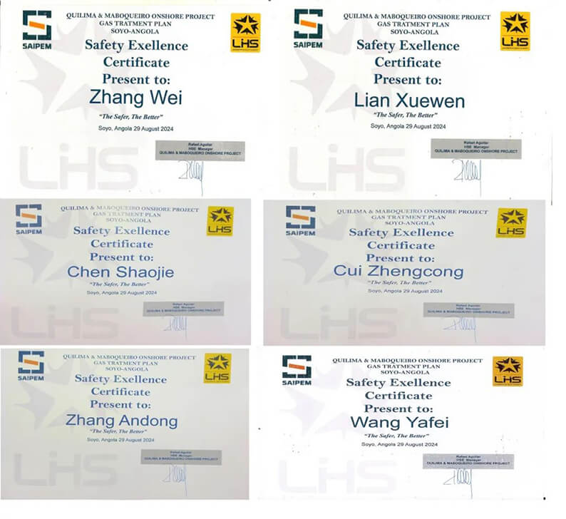 继索约气体处理项目在意大利SAIPEM公司全球安全审计中获赞后,近日,该公司再次为米兰平台安哥拉公司项目安全管理团队颁发奖状,对公司精心组织、科学管理,竭诚配合总包和业主安全管理工作予以表彰,公司也因此成为该项目5家中外承包商中首家获总包表彰的安全管理团队。