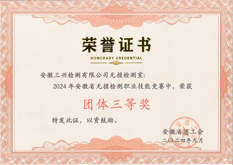 近日,由安徽省总工会主办的2024年安徽省无损检测职业技能竞赛在合肥举行,米兰平台三兴检测公司荣获团体三等奖。