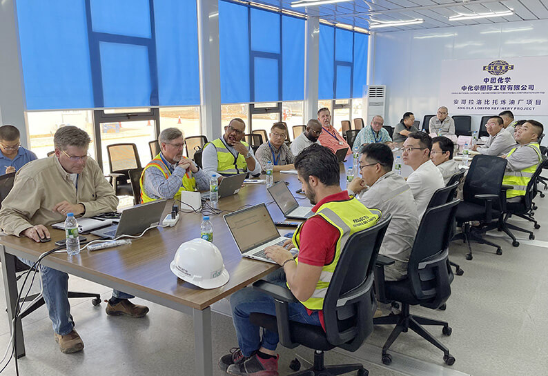 会上,业主安哥拉国家石油公司、监理美国KBR公司从人机料法环等方面,对洛比托炼油厂项目即将开工的储罐安装工程部分资料进行了严格审核,对安哥拉公司项目管理人员进行了全面了解。项目管理人员专业、耐心的解答,全面详实的项目建设方案,集中反映了中化三建严谨负责的工作态度,以及对高标准、高品质、高效率的不懈追求,获得业主和监理的一致肯定,顺利通过审核。