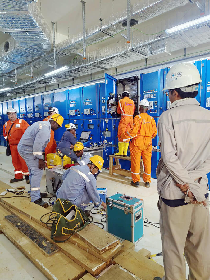 项目开工以来,安哥拉公司精心组织、科学管理,始终坚持“安全第一、质量至上”,高效推进项目建设。进入12月份,位于南半球的安哥拉进入了炎热的夏季。安哥拉公司克服高温潮湿、暴雨雷电等诸多不利因素影响,不等不靠,积极协调人、材、机资源,主动寻找作业面,尽一切可能创造施工条件。截至目前,项目SS01变电所一次受电成功,MEG发电机精准吊装到位,工艺管道预制工作基本完成,空冷器安装稳妥就位,UNIT199区域复合管安装圆满完成,多个节点计划按期实现,获得业主和总包的高度赞誉。