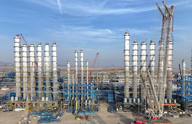 作为阿曼首个使用3200吨吊车的多晶硅项目,项目塔器吊装选用3200吨吊车主吊,750吨履带吊溜尾,从首件设备起吊到全部就位,阿曼公司仅用时90天,提前完成施工节点,创造了三化建“阿曼速度”,彰显了企业雄厚的吊装技术实力,进一步擦亮了公司品牌底色,赢得了业主高度赞誉。