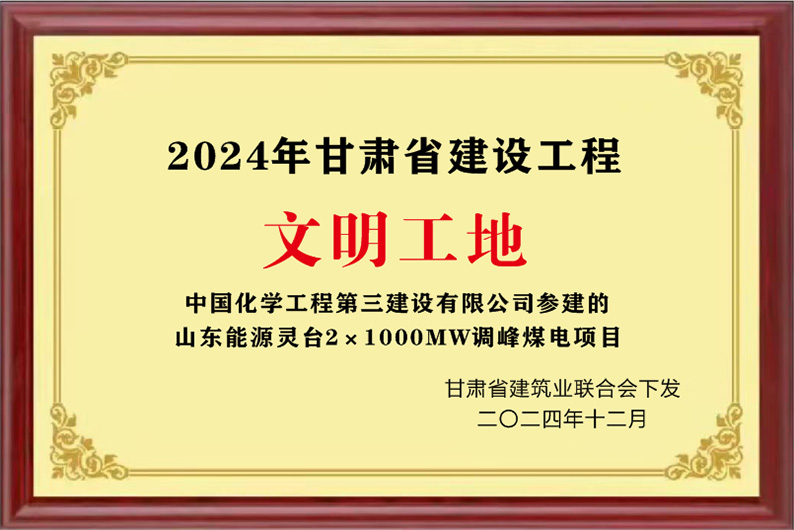 近日,甘肃省建筑业联合会公布2024年度甘肃省建设工程“文明工地”评选结果。米兰平台第二建安工程公司承建的山东能源灵台2×1000MW调峰煤电项目荣获2024年甘肃省建设工程“文明工地”称号。